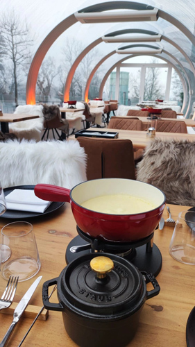 In dieser einzigartigen Umgebung ist das TUBBO ein innovativer Ort, der die Exzellenz des Hotels ergänzt. Hier können die Gäste eine gastronomische Auswahl an Fondues, Raclettes, spanischen Spezialitäten und Brunch genießen, die alle in einer intimen und sorgfältig gestalteten Atmosphäre serviert werden.